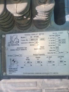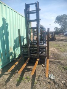 Heavy-duty Toyota 3T forklift with 4 tynes, ideal for timber and steel yards. Well-maintained and in good condition.